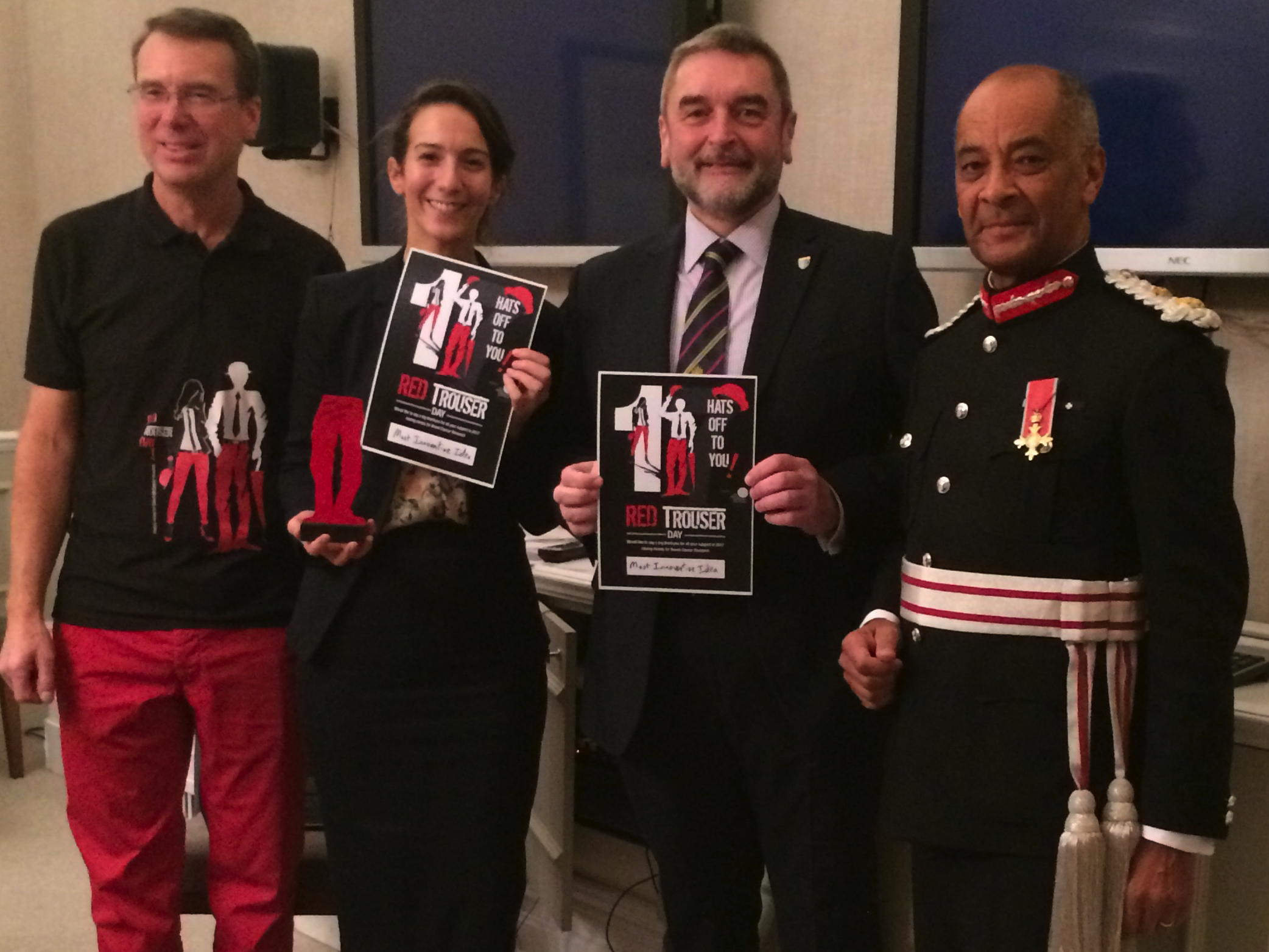 Although the Awards were a little ‘tongue in cheek’ the message and cause is very serious. Red Trouser Day was founded by Paul Finch to fund research in the very challenging and quite often taboo field of bowel cancer. Paul was diagnosed with stage 3 nearly 4 colorectal cancer with probable secondary to lung in Jan 2014. As a result of his treatment at the Royal Marsden, he overturned a 10% chance of making it 5 years to 99% full recovery without major life changing bowel surgery with thanks to the expertise of the teams at the Royal Marsden. Paul’s mission is to create an annual fun event to raise awareness & funds to support The Royal Marsden Hospital in specific targeted research, including: helping global leaders to create early detection methods; helping to fund technological improvements including robotics in the operating theatre and to help kick start a fund to support anxiety and create support for patient communities.